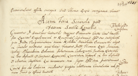 Z księgi radzieckiej Kazimierza obejmującej lata 1623–1626: wpis dokumentujący wybór rady urzędującej rok 1626, z Wawrzyńcem Toporskim w składzie – oraz zbliżenie zapisu imienia (Archiwum Narodowe w Krakowie, sygn. K 36, s. 1231)