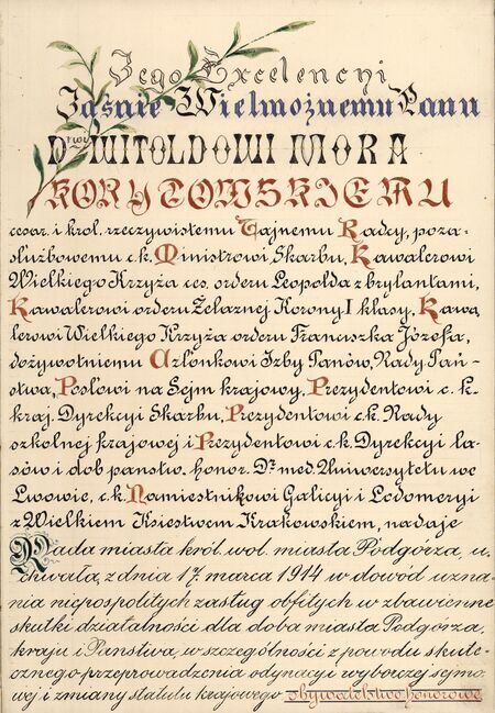 tytuł honorowego obywatela Podgórza nadany 17 marca 1914 roku |