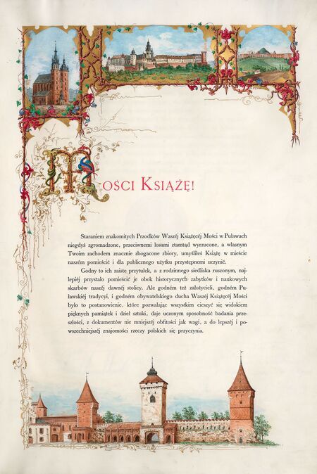 Tytuł nadany uchwałą Rady Miejskiej podjętą na posiedzeniu 7 października 1880 r. (DzRMK 1880, L. 4, s. 43), gdy urząd prezydenta miasta pełnił Mikołaj Zyblikiewicz. Wniosek zainicjowany przez radcę miejskiego prezesa Izby Handlowej Teodora Baranowskiego referował radca miejski Walery Rzewuski. We wniosku eksponowano wdzięczność za lokalizację w Krakowie skarbów sztuki z rodzinnej kolekcji książąt Czartoryskich i ich powszechne udostępnienie. Wręczenie dyplomu (patrz także s. 138) ozdobionego przez Stanisława Eliasza Radzikowskiego nastąpiło 26 czerwca 1881 r. w Arsenale, siedzibie tworzącego się muzeum.