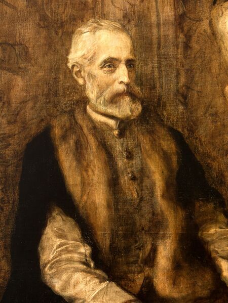 Centralny fragment portretu księcia Władysława Czartoryskiego z lat 1892–1893 pędzla Teodora Axentowicza oraz własnoręczny podpis uhonorowanego.