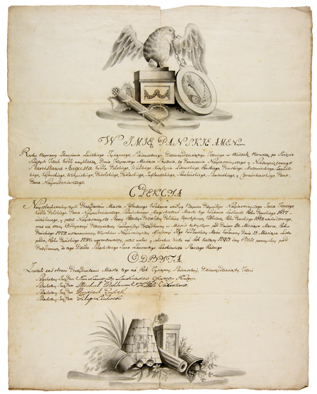 Z urzędowego spisu rajców obejmującego lata 1363–1802 wkładka do spisu z listą prezydentów (rajców prezydujących) wybranych do nowej rady miasta 13 stycznia 1793 roku, wśród których znajduje się Wojciech Tuszek – oraz powiększenie zapisu imienia (Archiwum Państwowe w Krakowie, sygn. rkps 1477, wkładka)
