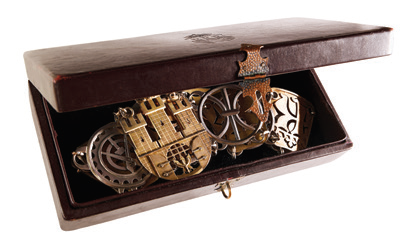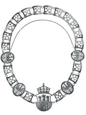 • insygnia rady miejskiej i radnych – właściwe organowi radzieckiemu, stojącemu na czele miasta od roku 1312 (istniał już wcześniej, lecz ustępował w hierarchii władz miejskich wójtowi i ławie miejskiej); spoglądamy tu zarówno na radę miejską jako ciało kolegialne, jak i na pojedynczych radnych oraz wyłonionych przewodniczących tego gremium. Znajdujemy tu takie symbole–insygnia identyfikujące organ i eksponujące godność, jak: