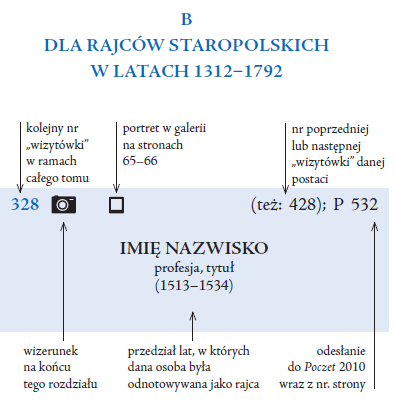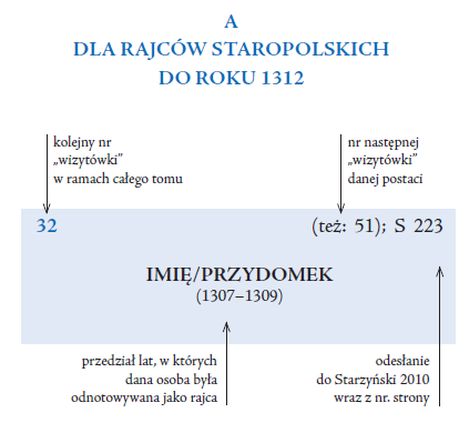 W przypadku staropolskich rajców w prawym górnym rogu umieszczono odesłania: