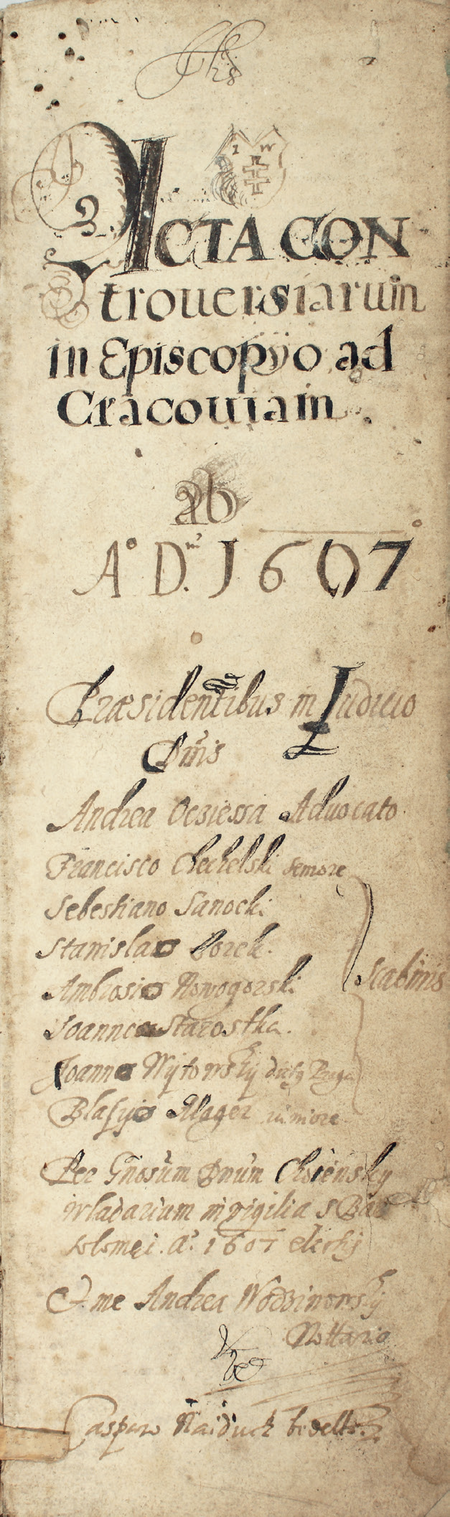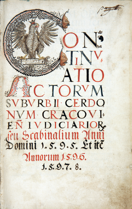 Karty tytułowe księgi ławniczej jurydyki Garbary, obejmującej lata 1595–1598, oraz księgi ławniczej jurydyki Biskupie z lat 1650–1655 (Archiwum Narodowe w Krakowie, sygn. Jur. IV-15, s. tytułowa, Jur. I-25, s. tytułowa)