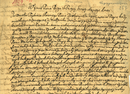 Z fascykułu zawierającego testamenty z lat 1592–1785: początkowy fragment sporządzonego w 1624 roku testamentu rajczyni Doroty, żony Zachariasza Węgrzynowskiego – oraz zbliżenie zapisu imienia i urzędu (Archiwum Narodowe w Krakowie, sygn. K 444, s. 267)